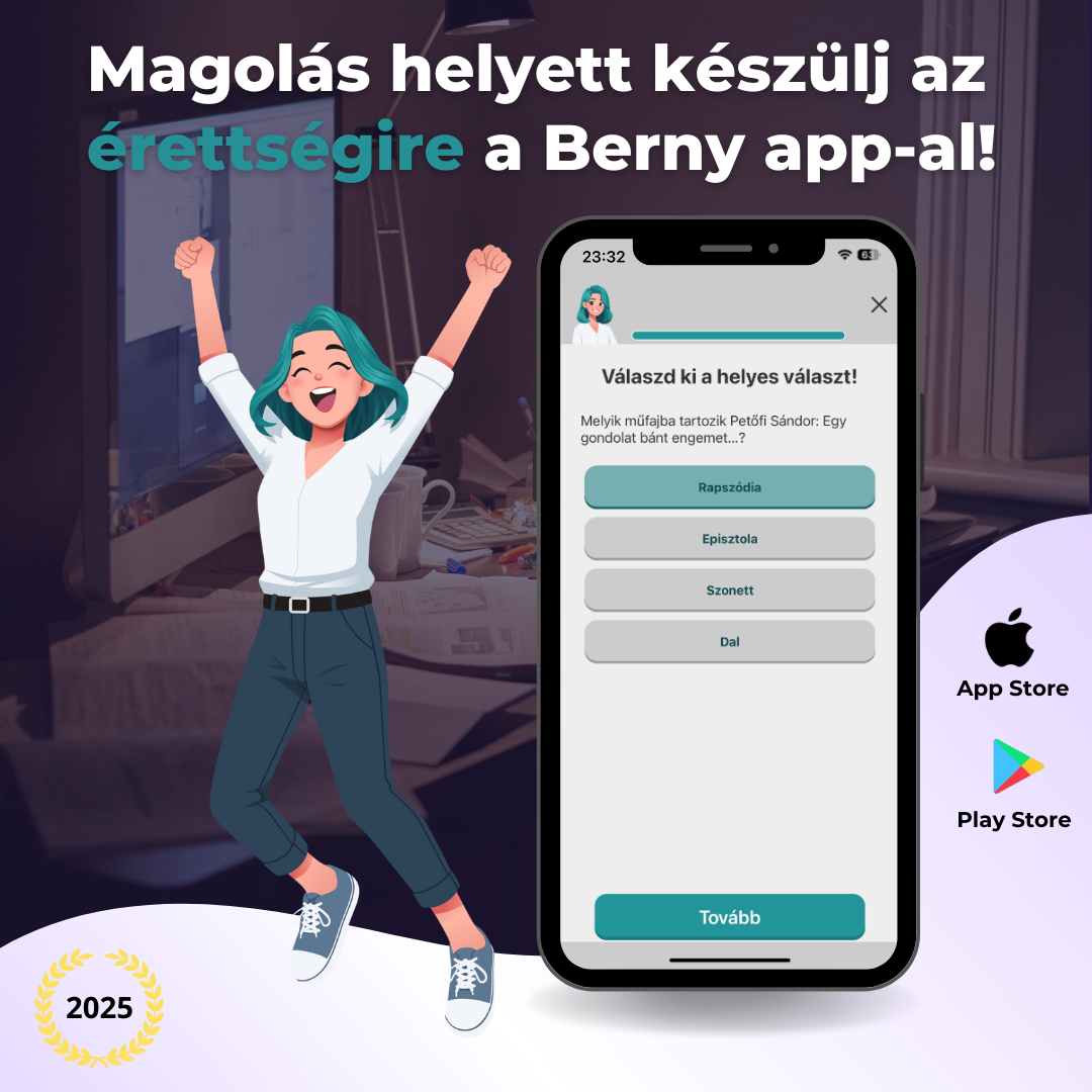 A célünk az volt, hogy a felkészülés minél egyszerűbben és gyorsabban elérhető legyen, ezért egy olyan platformot hoztunk létre, ahol a kérdéseket követően rögtön látszódnak a helyes válaszok és ahol szükséges, magyarázatokkal is kiegészítettük a helyes válaszokat. 7 tudásanyag tölthető le és 2.500 kérdést lehet megválaszolni, ezek közül 3.500 kérdés gyakorló és 500 érettségi típusú, ami körülbelül 30 irodalmi feladatlapnak felel meg. Sok sikert kívánunk a felkészüléshez és minden visszajelzésnek örülünk. Hajrá! 🙂